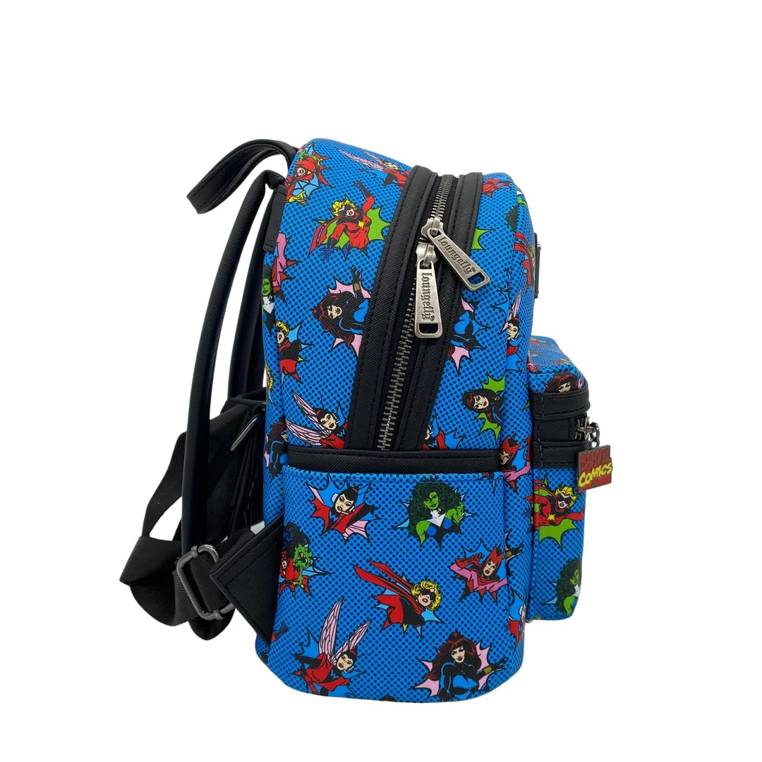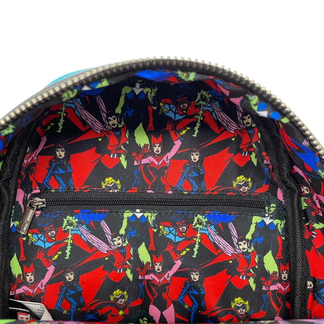 Jump into action with the Modern Pinup Exclusive Women of Marvel backpack! This bright blue bag is the perfect statement piece for any superhero fan. The all-over-print highlights many underrated Marvel women, including She-Hulk, The Wasp, Scarlet Witch, Captain Marvel, Spider-Woman, and Black Widow. Don’t miss out on this powerful backpack!