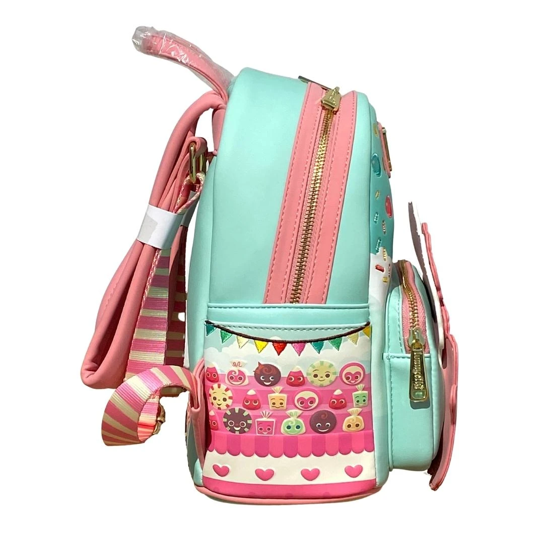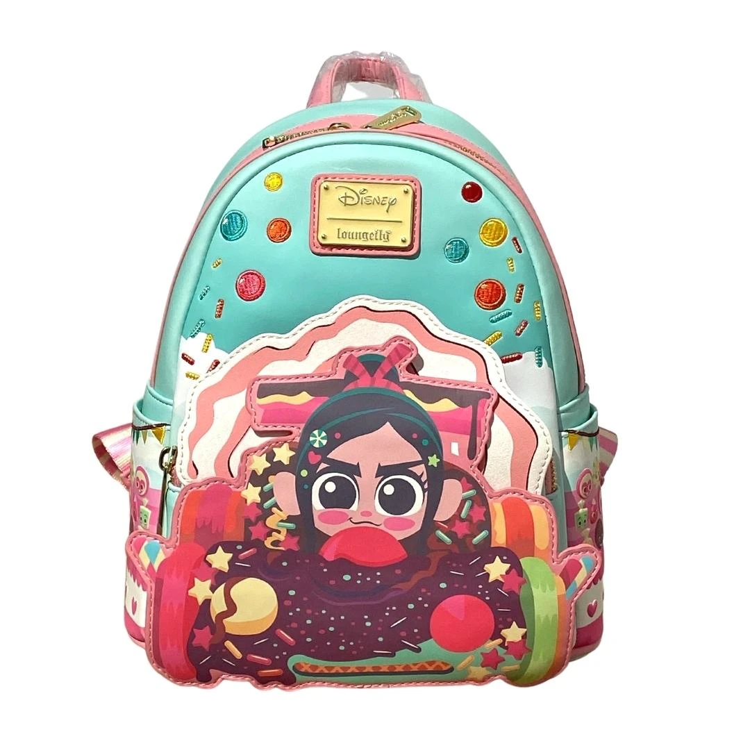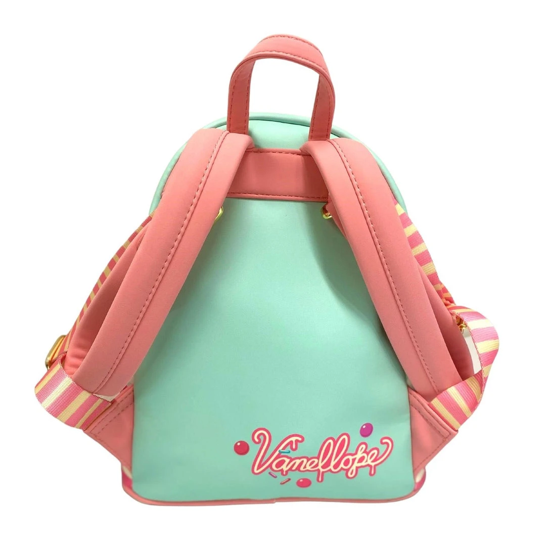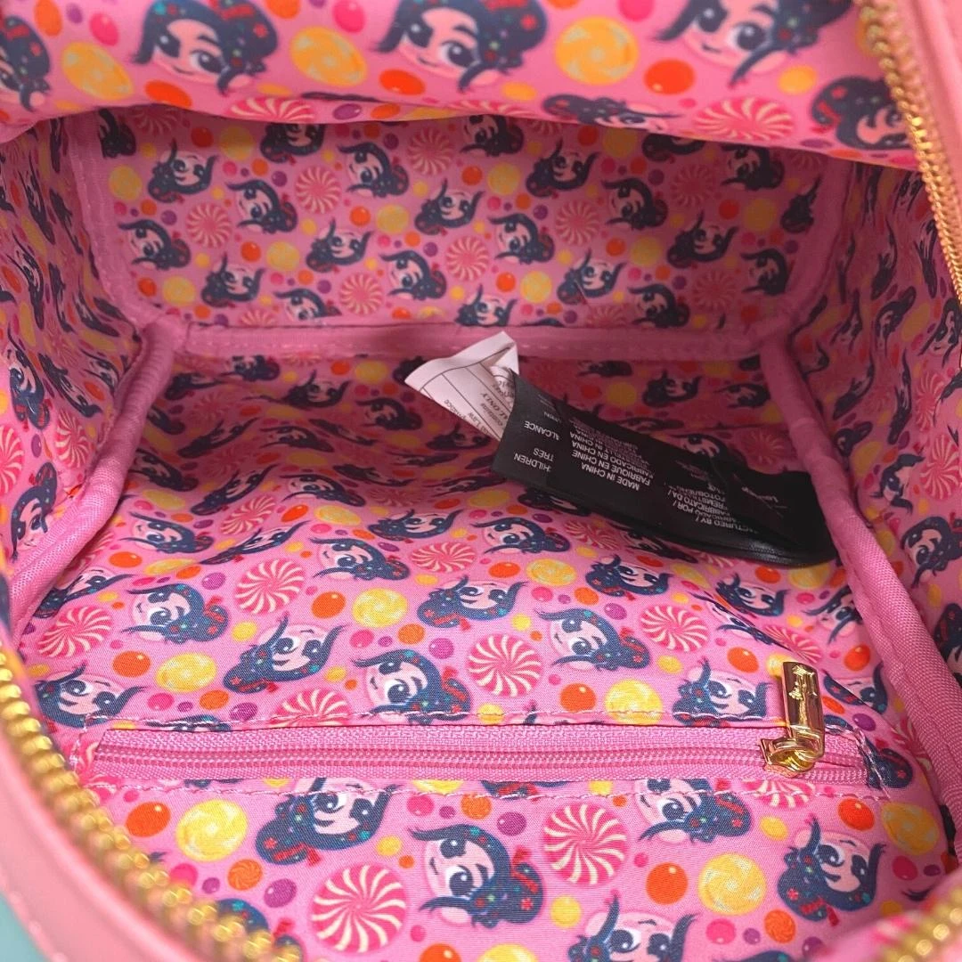 Our exclusive Vanellope mini will have hearts racing! Vibrant, bubbly and fun-fueled, accessorizing with this mini will liven up any outfit. Featuring embroidered candy, large and glittered applique, puff print as well as pink-striped strap detailing! There are endless refreshingly fun and unique design elements with this Modern Pinup exclusive!