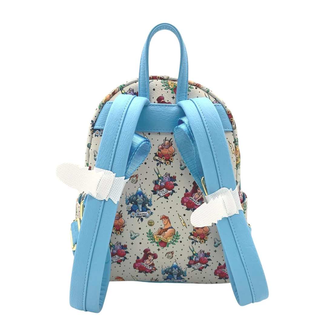 Youโll be saying youโre in love when you see our Exclusive Hercules Tattoo AOP backpack! The newest addition to the Tattoo lineup, this bag includes Hercules, Hades, Megara, Phil, Pain and Panic. Add in the gold lightning bolt charm on the front zipper, and this bag is fit for any hero!