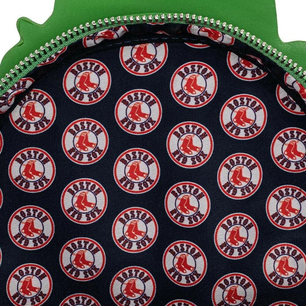 Red Sox fans, you won’t be able to resist this Loungefly Boston Red Sox Wally the Green Monster Mini Backpack. You’ll love taking Wally to and from all your Red Sox games. The front zippered pouch reads “Red Sox” and doubles as Wally’s uniform. On the sides are a pair of red socks and the B logo. Note the MLB Loungefly plaque on the front pouch and Wally on the back. The interior is lined with dark blue fabric and Red Sox logo print.