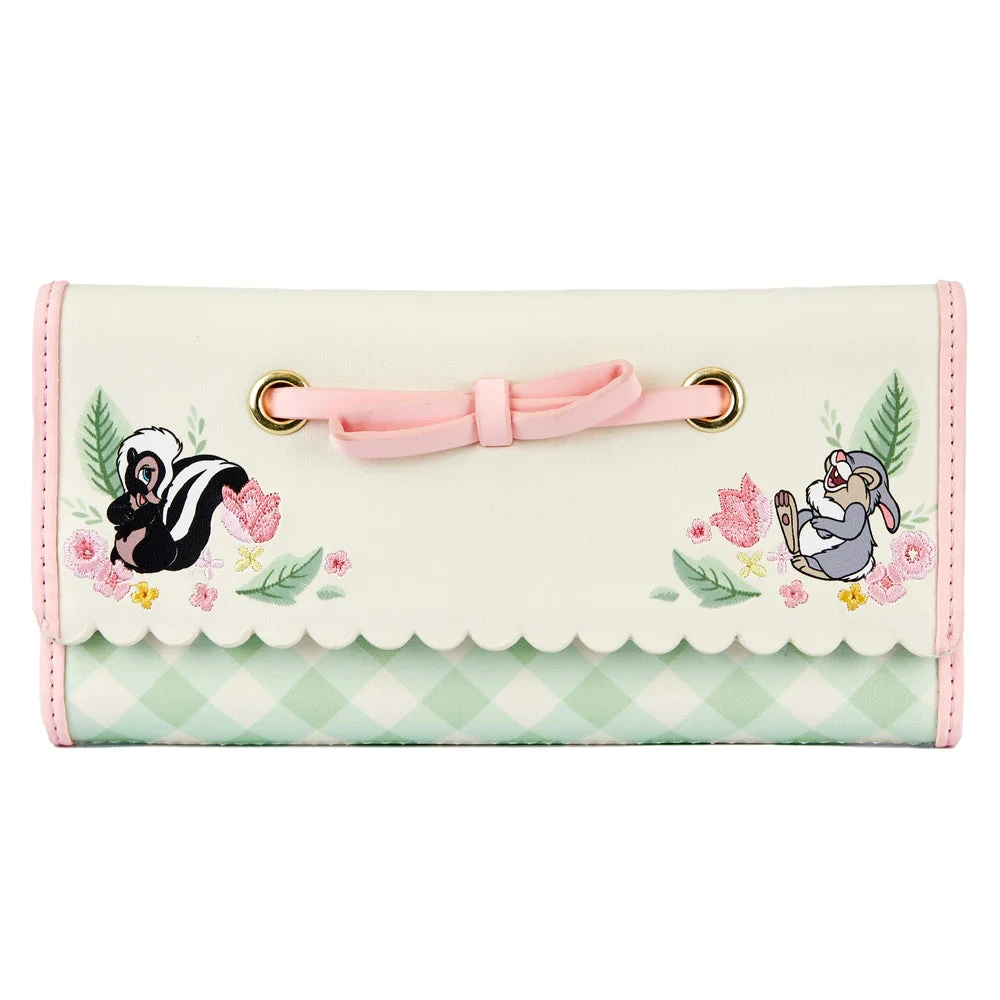 Flower and Thumper are eager to jump into Spring with you–looking fresh and fashionable, of course! This adorable Bambi Springtime wallet provides 6 card holders, an ID window, bill fold and zippered coin pouch. Keep your cash and cards safe while staying true to your love of Bambi and the Spring!