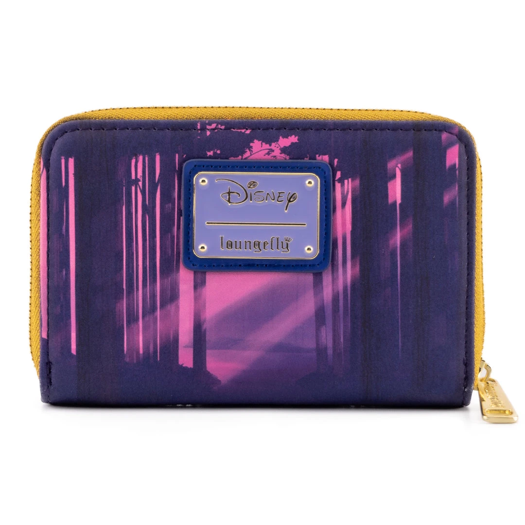 Featuring a centered rainbow cascading onto Pocahontas and accompanying friends, Meeko and Flint, this accessory offers utility and style. Providing an ID window, 5 card holders, and a bill fold, secured with golden, zippered, metal-hardware.ย