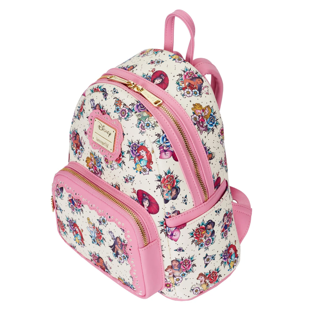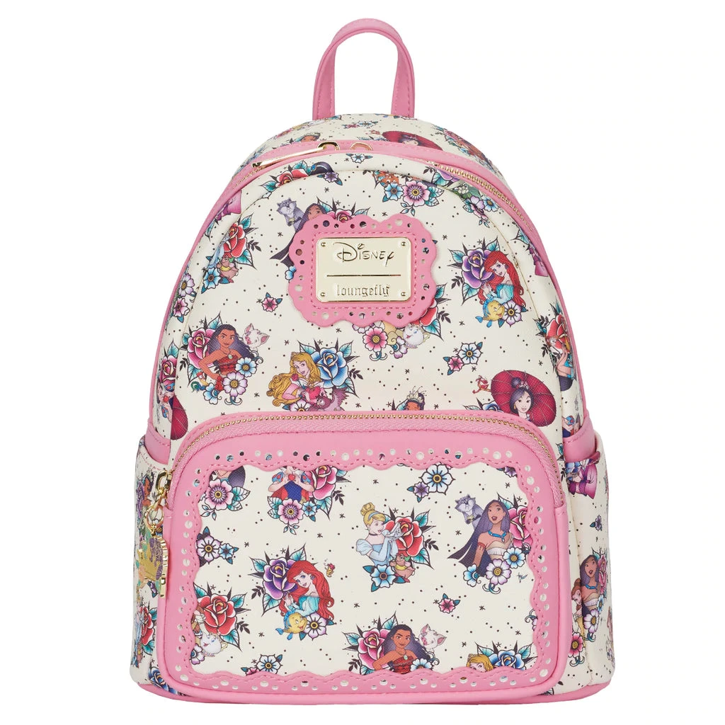 You’ll feel like royalty when you wear the Disney Princess Tattoo Mini Backpack! Cute with a hint of edge, each tattoo design showcases many of your favorite princesses adorned in flowers, including Mulan, Cinderella, Snow White, Belle, Moana, Aurora, Ariel and Tiana. Be sure to note the lace details and flower/crown zipper charm – you’ll be sure to live happily ever after when you own this bag!