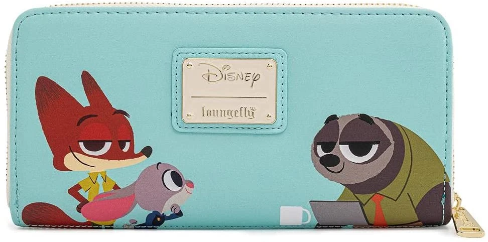 Need somewhere safe to stash your valuables while you’re on duty around the city? Let Judy, Nick, and the rest of the Zootopia gang keep them safe with this Loungefly Disney Zootopia Chibi Group Wallet. The back features the memorable DMV scene with Flash the sloth, Nick, and Judy. Holds 7 cards, ID, bills, and coins. Interior is blue with alternating white and blue card slots, with white fabric lining printed with Judy chasing Nick and “It wasn’t me!”