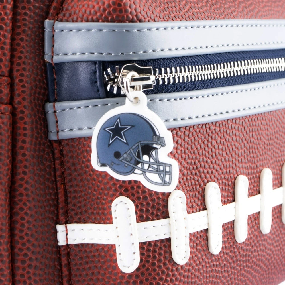 Root for America’s Team with this Official Loungefly NFL Cowboys accessory! Embroidered with the Cowboys logo, stunningly stitched front and center. Featuring a rubber Official Cowboys helmet zipper detail, compounded with a gorgeously textured skin, grey and blue trim as well as a Cowboys logo lining. Show off your pride of the Dallas Cowboys in style, today!
