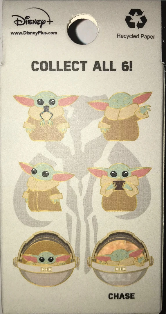These pins are sold individually and blind. They are blind packaged so you won’t know what pin you get until you open the box. There is one pearlized The Child closing its eyes in cradle pin in every 12 pins (the Chase). Purchase 12, we will send you a whole box and you will be guaranteed the Chase.