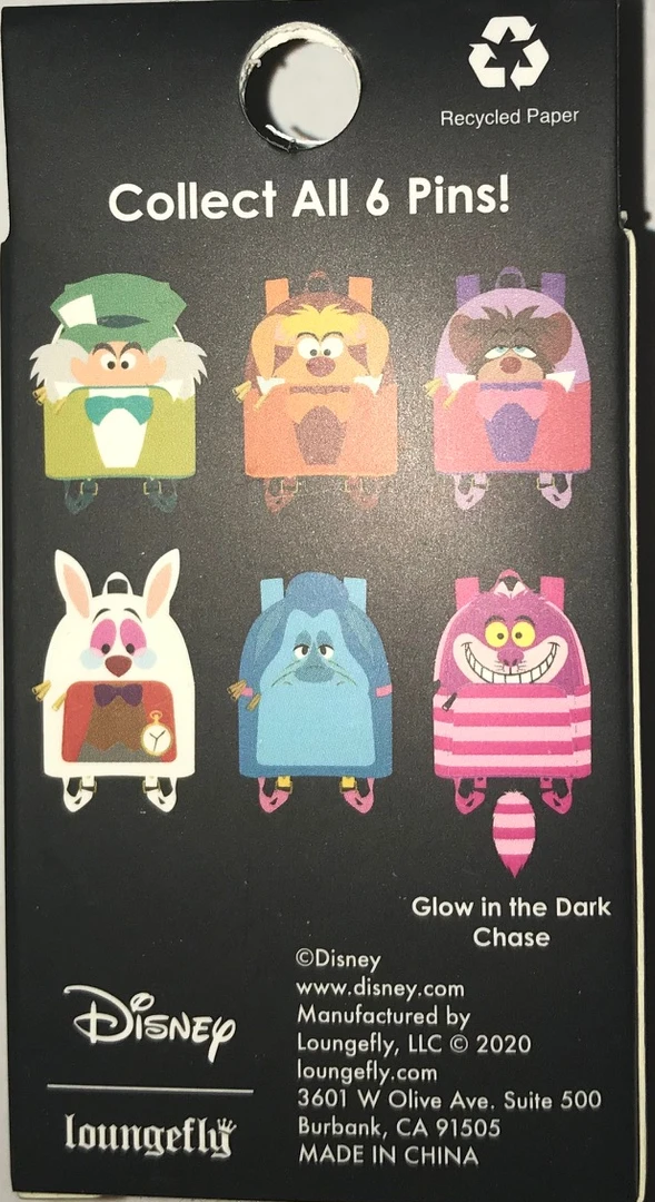 These pins are sold individually and blind. They are blind packaged so you won’t know what pin you get until you open the box. There is one Cheshire Cat pin in every 12 pins (the Chase). Collect all 6! Purchase 12, we will send you an entire box and you will be guaranteed the Chase.