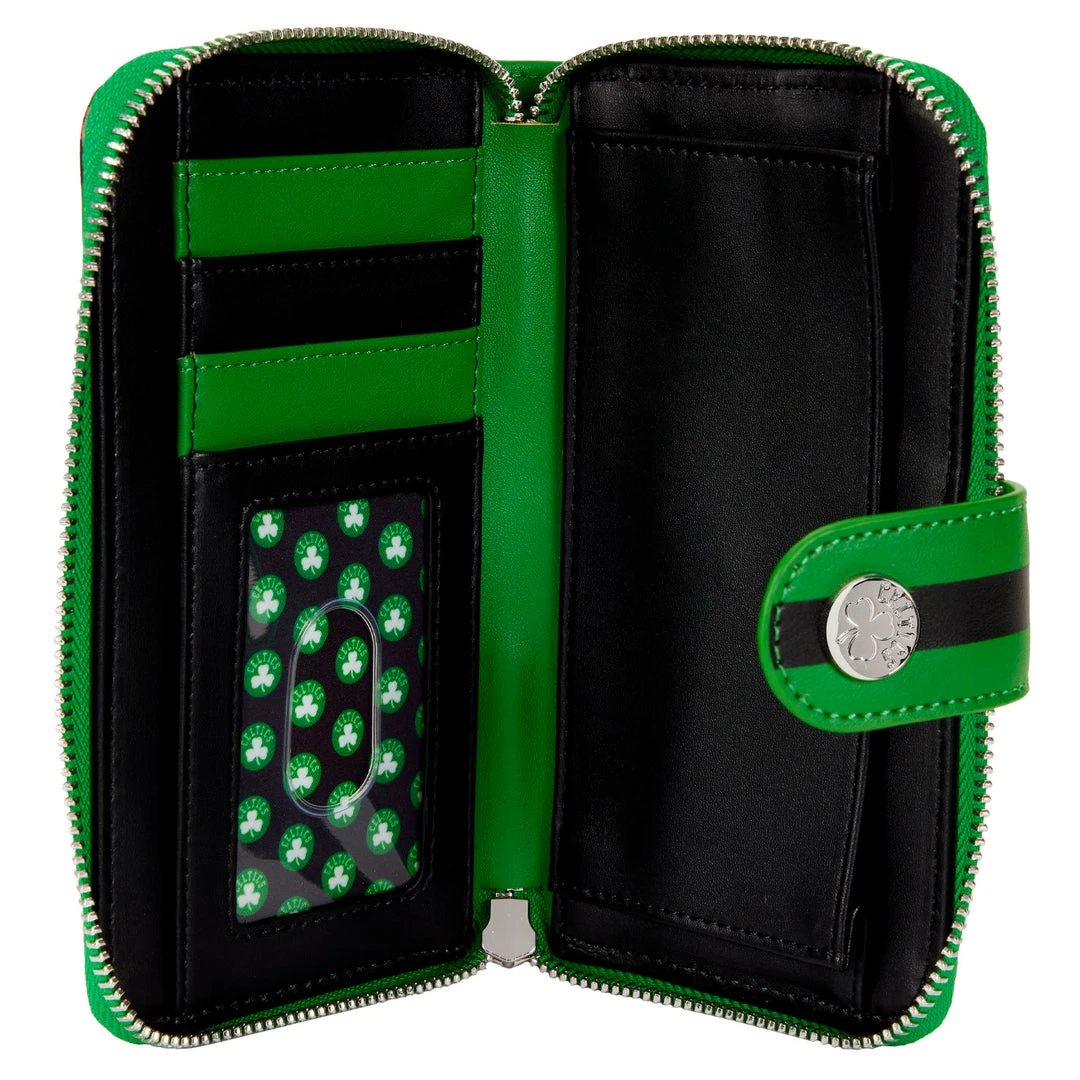 Keep your favorite team close at hand with the NBA Boston Celtics Logo Wallet! Anyone who loves the Celtics is sure to appreciate the all-over print of the logo, including the Shamrock logo, and their mascot, Lucky the Leprechaun. This wallet is the best good luck charm for any game!